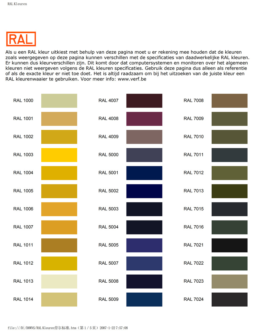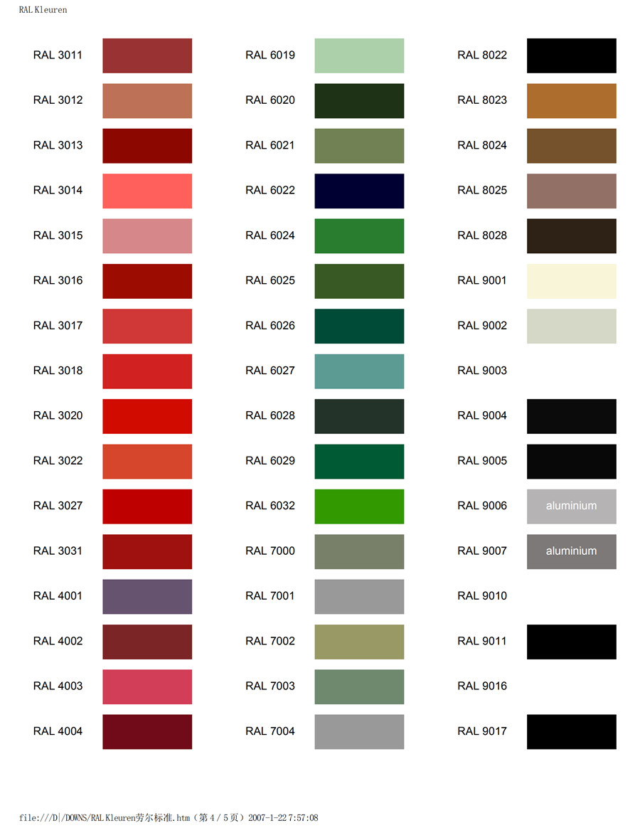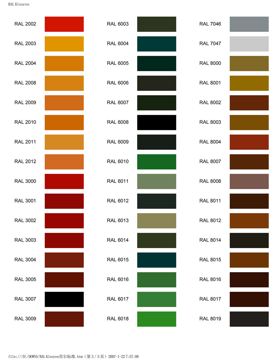 勞爾K7色卡